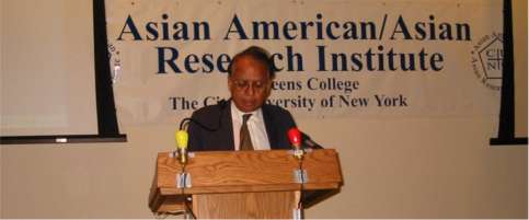 Before I start my presentation, I also wanted to tell you that it’s never easy for us, Asian Americans, or South Asians or people who are generally hyphenated. And I’ll give you a glaring example. We started the content for the establishment of what we have now, the Asian American/Asian Research Center, some six or seven years back. It started right here at Baruch. It was back and forth, yes and no, all kinds of things, and it was really not a big deal on the part of the University, but it took us six or seven years. I had frankly given up. It’s because of the persistence and strong leadership of my good friends Dr. Thomas Tam and Dr. Betty Sung that we are here today, and I want to congratulate both of them and other friends for their persistence, so that we now have this institute.